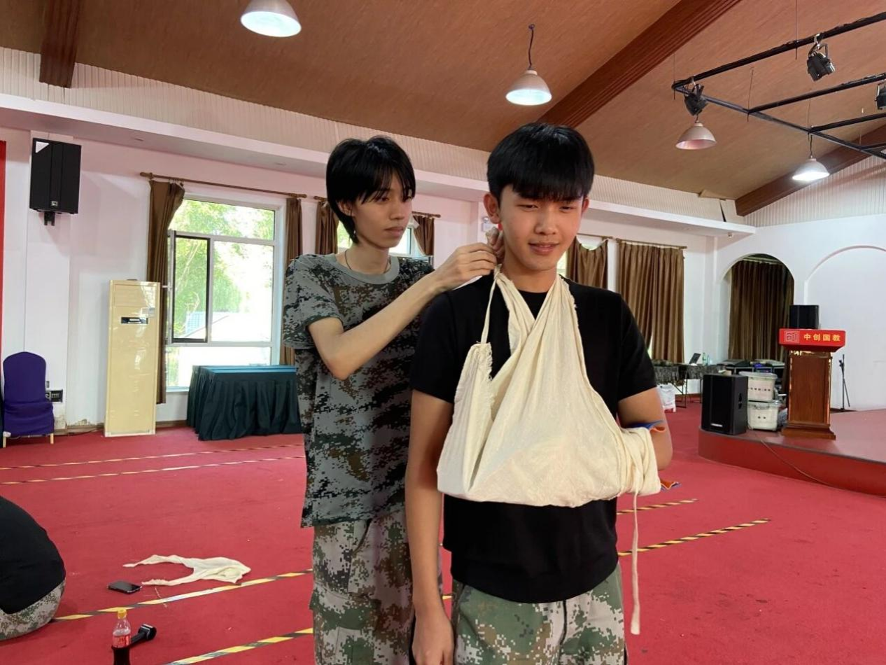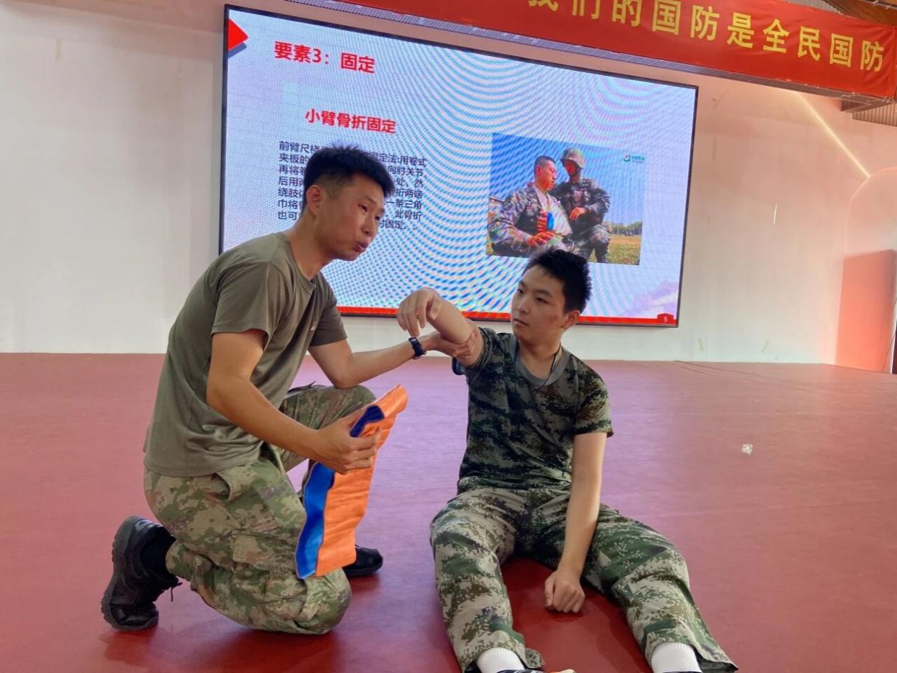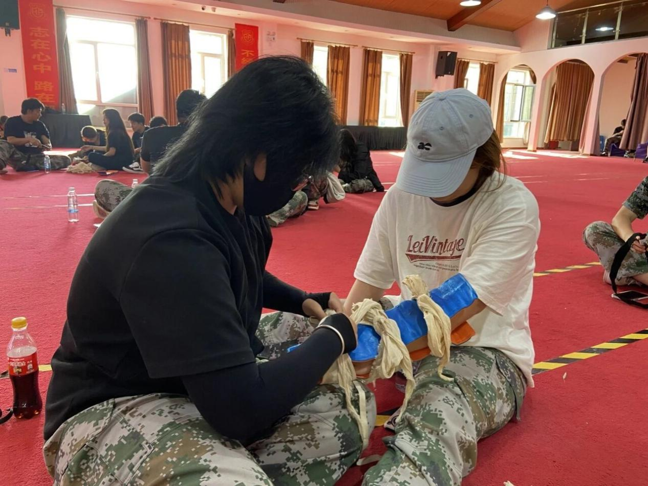 在伤口包扎学习中,同学们认真聆听教官讲解,互相练习包扎技巧。从生疏到熟练,实用的急救知识让每个人都收获满满。