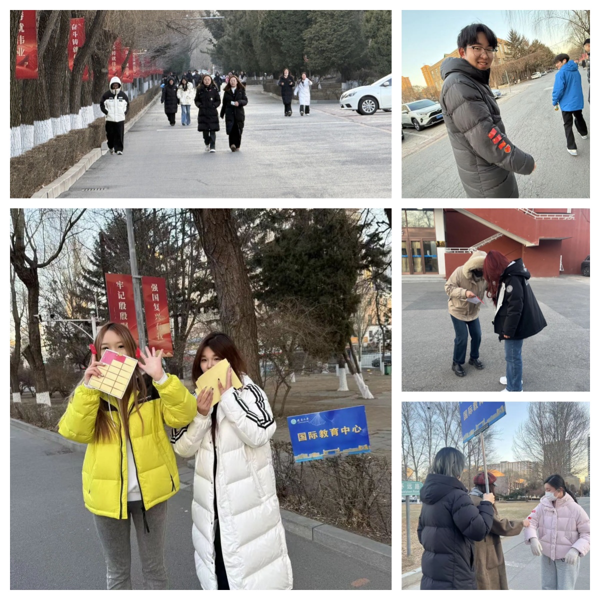 15:30,参赛同学齐聚崇山校区篮球场。尽管冬意渐浓,但同学们热情高涨,精神饱满。在简短而庄重的动员后,全体选手一齐出发,沿着校园预设路线奔跑。路线共设置4个打卡点,每到一个点位,工作人员都会为选手贴上鲜艳的小红旗 贴纸,象征红色精神的接力与传承。
